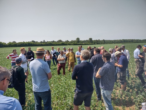 Last week over forty farmers and researchers met at a farm workshop in Oxfordshire to share their experiences of intercropping, as part of the European project LEGUMINOSE. The event was kindly hosted by Ben Adams, who is in the middle of his own intercropping trial.